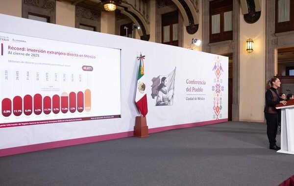 Presidenta Claudia Sheinbaum destaca récord en Inversión Extranjera Directa; creció 10.8% respecto a 2024