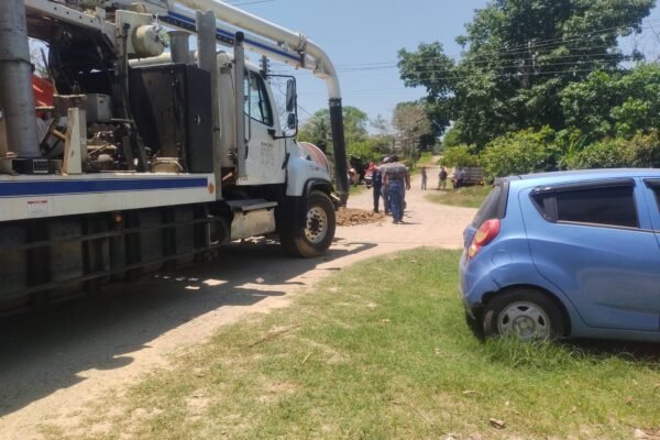 Al reporte de fallas del drenaje de la población de Suchilapan el presidente municipal constitucional de Jesús Carranza, Ver. M.V.Z Ranferi Plata Rodríguez, atiende las necesidades de su municipio.